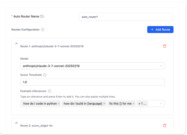 - If a route's similarity score exceeds the threshold, the request is routed to that model
